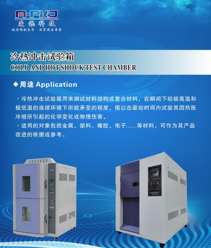 冷热冲击箱:主要用于测试材料或产品在极端温度变化下的耐受性,检测其在热胀冷缩过程中的物理或化学变化。