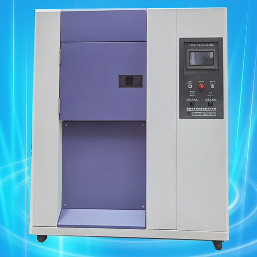 品质部两槽式冷热冲击实验箱用于电子电器零组件塑胶等行业、自动化零部件、通讯组件、汽车配件、金属、化学材料、塑料等行业,国防工业、航天、兵工业、BGA、PCB基扳、电子芯片IC、半导体陶磁及高分子材料之物理性变化进行试验,用来测试材料结构或复合材料,在瞬间下经高温及低温的连续环境下所能忍受的程度,藉以在短时间内试验其热胀冷缩所引起的化学变化或物理变化。