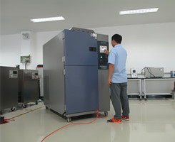 一、新能源冲击箱区分为高温区、低温区、测试区三部分,测试样品完全静止于测试区。采用独特之蓄热、蓄冷结构,强制冷热风路切换方式导入测试区,冲击时高温区或低温区的温度冲入测试区进行冲击,完成冷热温度冲击测试。